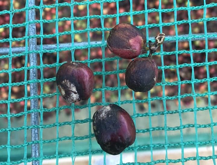 Đó là những quả bị chết trên cây (không có tính hàng rụng đất luôn nhé). Nó vẫn mốc, vẫn quá men…. bình thường. Có những quả mới chỉ “chết” một phần, có những quả thì đen xì, khô đét.